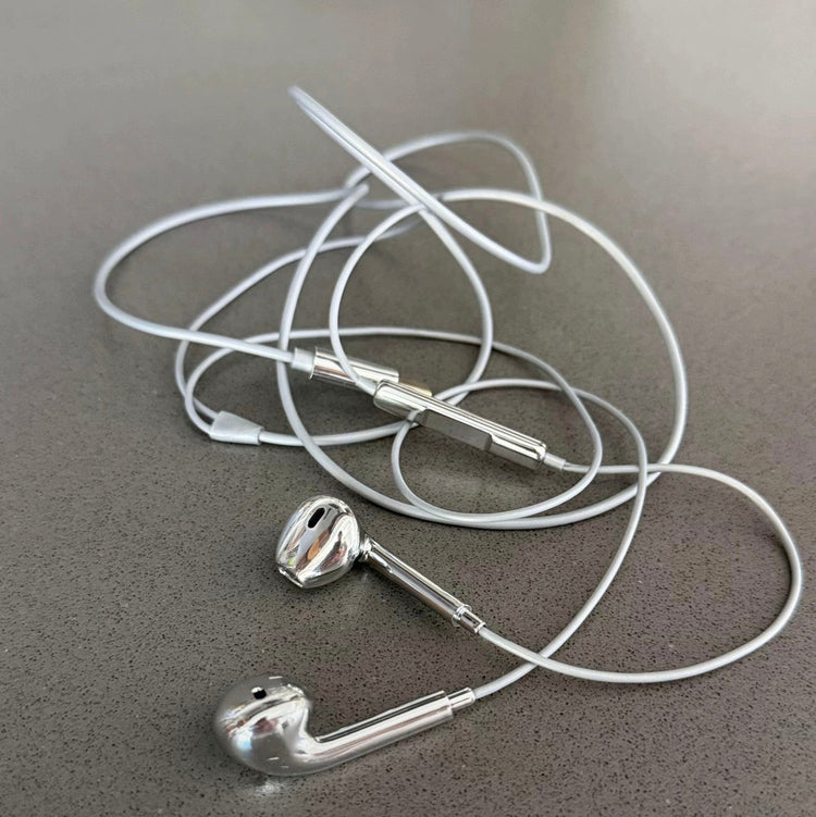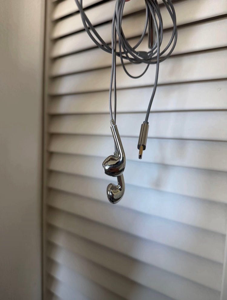 Crafted with a bold mirror-chrome finish, these wired earbuds transform everyday listening into a statement. The smooth metallic surface catches the light from every angle, delivering a futuristic, Y2K-inspired aesthetic that feels more like a fashion accessory than a piece of tech.